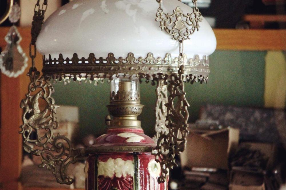 Vacker hängfotogenlampa.